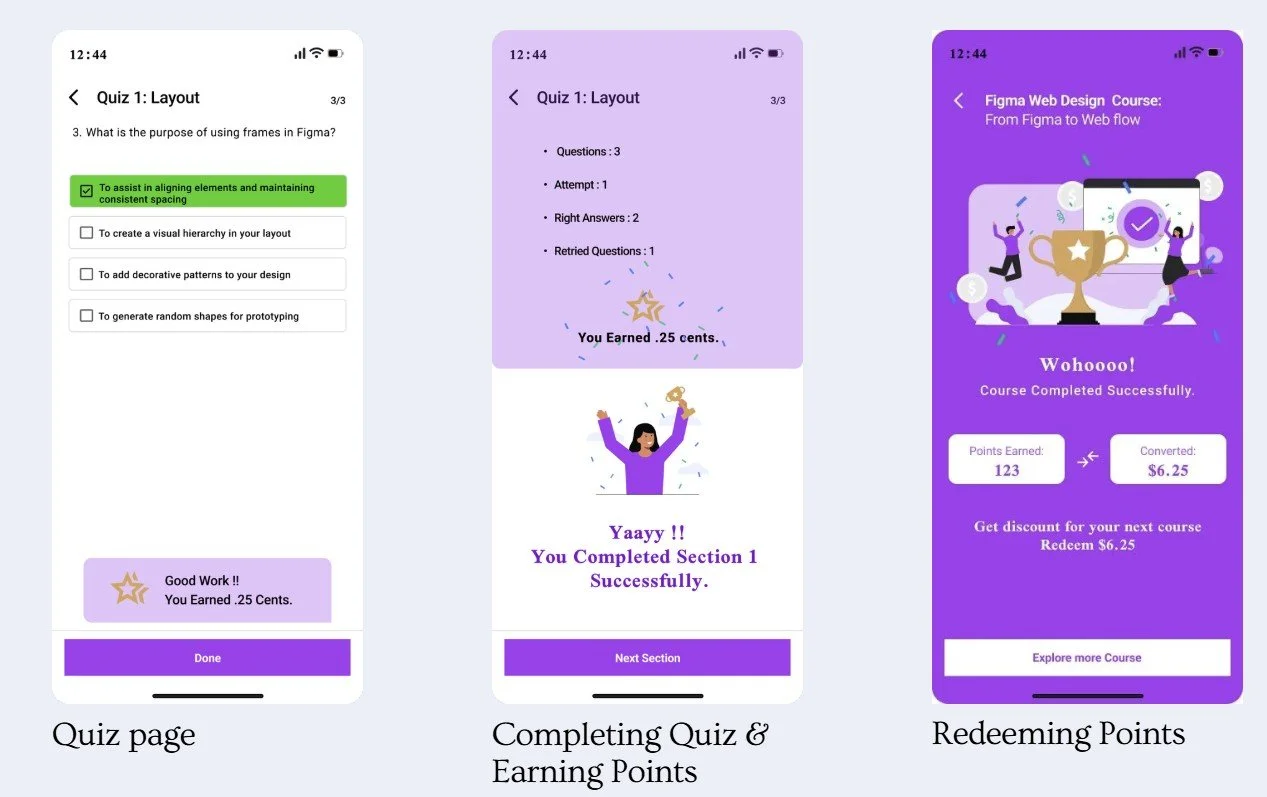 Designed a quiz-based reward system to motivate learners and increase course completion