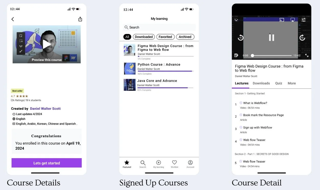Designed information architecture and user flows to improve the course learning journey